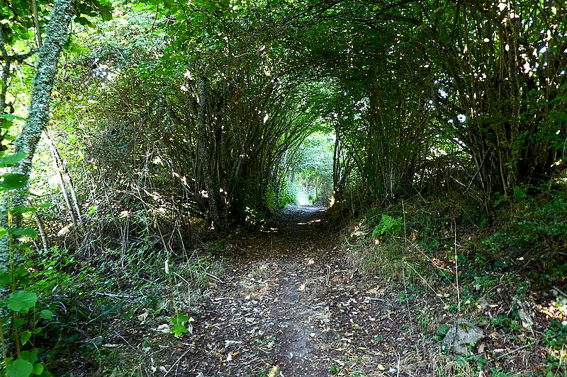 Je quitte l'Hôtel à 7h après un bon petit-déjeuner servi par Mila mon hôtesse. La sortie de la localité est facile en suivant une Via Verde. Je passe devant l'ancienne gare de Santelices puis sur un viaduc qui enjambe le Rio Engaña. Un peu plus loin, je commence à grimper sur un plateau en suivant une piste assez large. Le chemin grimpe assez fortement sur un terrain rocailleux mais dans un environnement verdoyant.