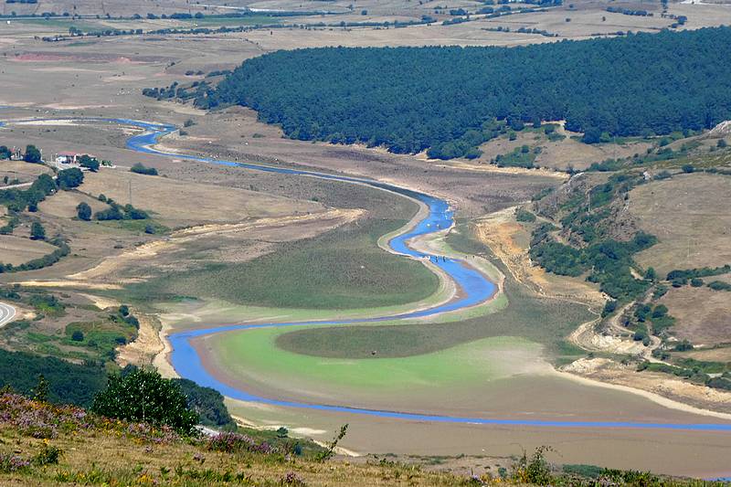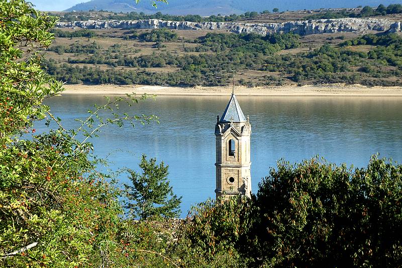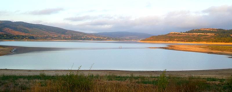 Nous quittons le camping de Arija à 6h15. Le temps est frais et nous allons marcher pendant 3h le long du lac de barrage sur le fleuve l'Èbre (Embalse del Ebro).