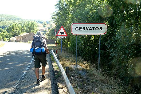 À peu près au même endroit, où j'ai chuté l'an dernier, on manque une signalisation ce qui nous rallonge de près d'un kilomètre. Il y a ensuite une longue descente jusqu'à Cervatos où la dame chez laquelle j'ai réservé à Olea pour la nuit, dans une Casa Rural,vient nous chercher pour nous emmener dans une petite ville, Rainosa, où nous allons faire des courses pour le dîner.