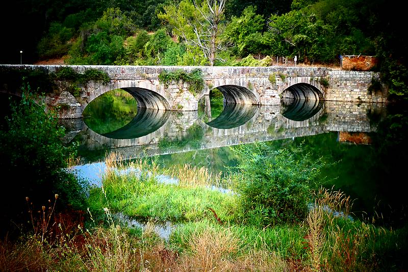 "Le Camino quitte Cistierna à côté de la Cruz del Molino, pour traverser l'Esla par le pont du Mercadillo.