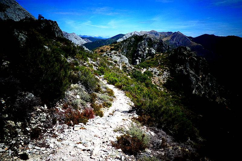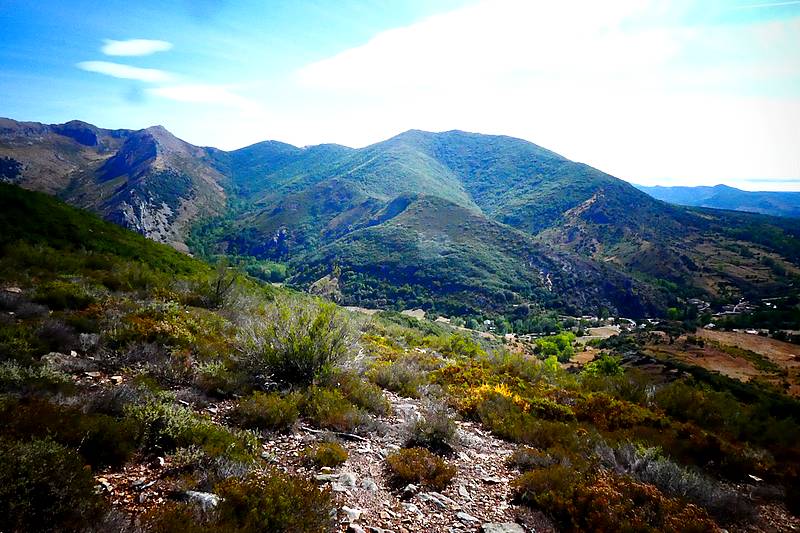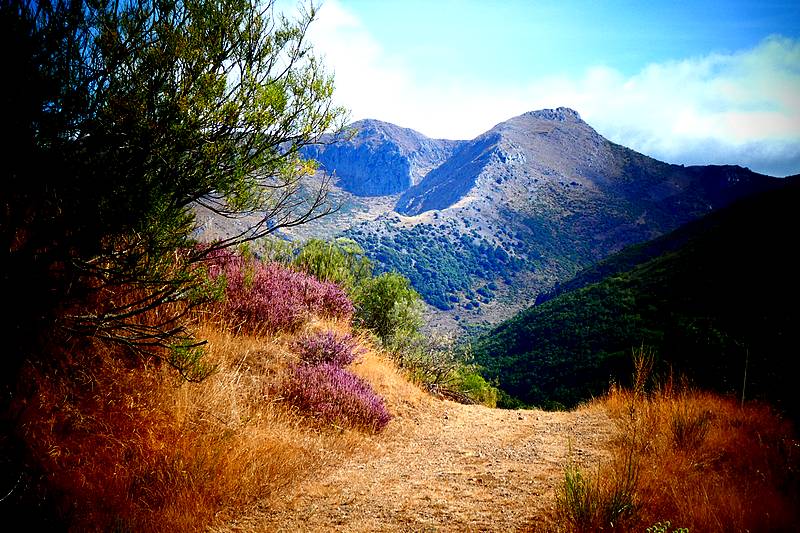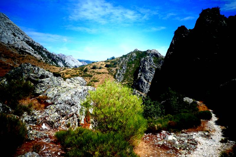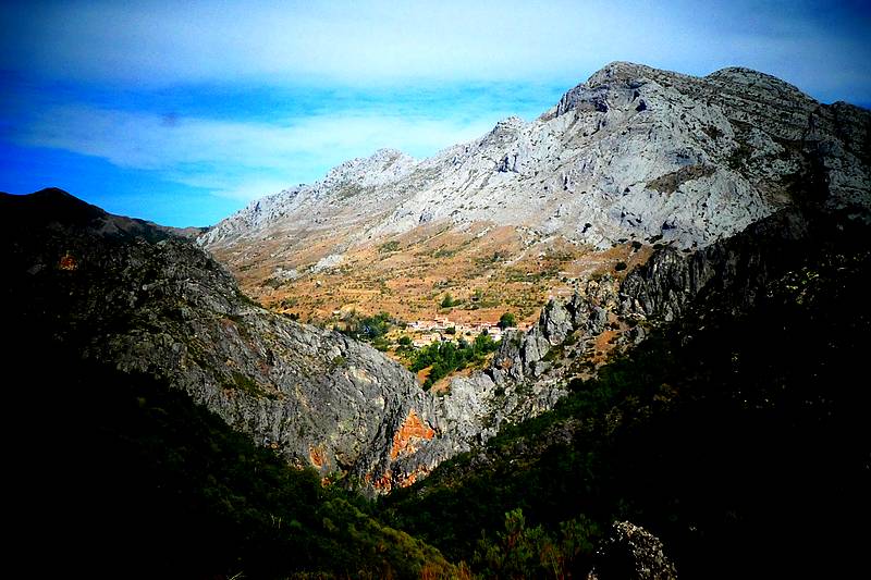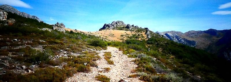 Je traverse 3 pueblos, je fais une pause et après le 4ème, La Mata de la Bérbula, commence une montée assez raide qui va s'accentuer pour devenir un sentier rocailleux avec des passages rocheux et aussi un peu d'escalade !...