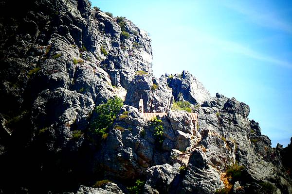 Je reprends ce sentier qui serpente en balcon. J'aperçois alors l'Ermitage de Valdorria et le village du même nom. Il y a encore une bonne grimpée puis une descente difficile