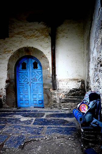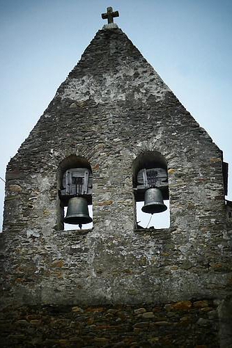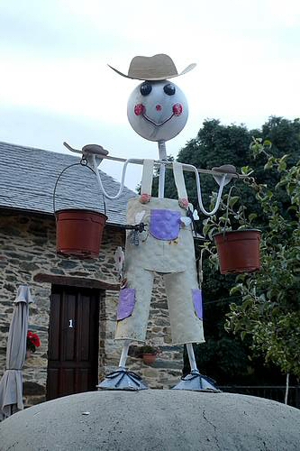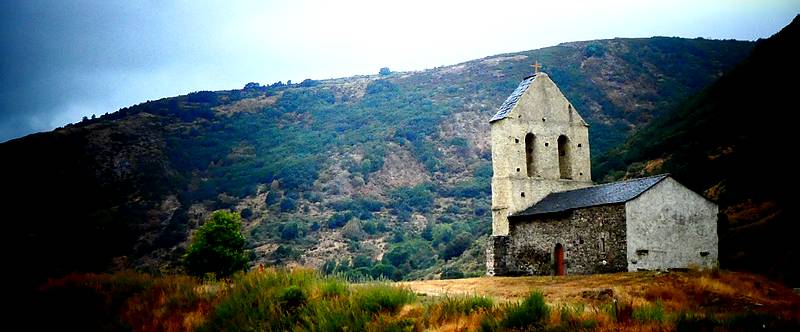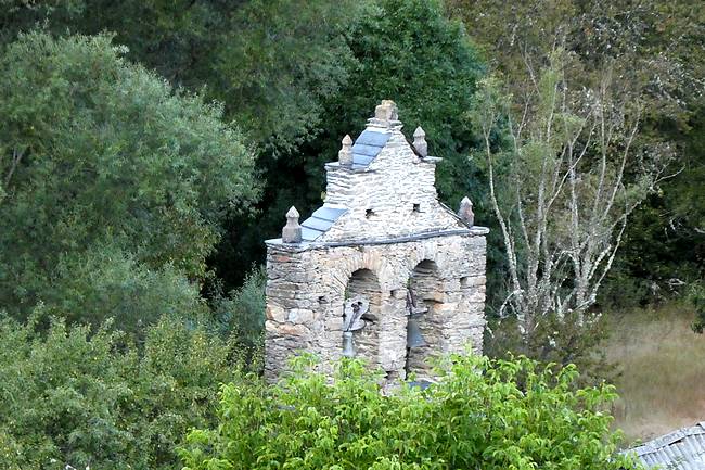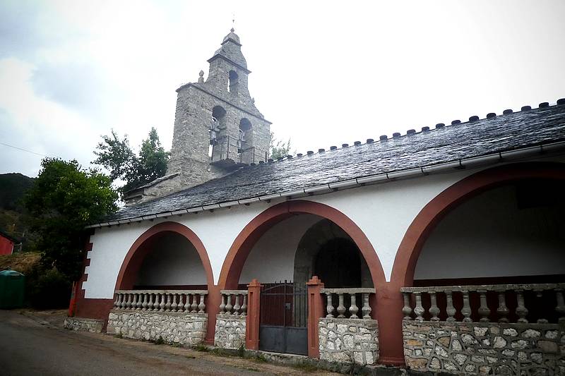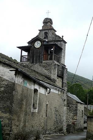6ème village, Cirujales, et là je fais une pause sous le porche de l'église. En partant, il commence à tomber quelques gouttes. Comme je m'arrête pour sortir la cape de mon sac un homme