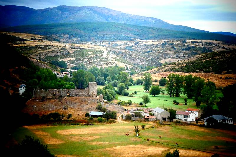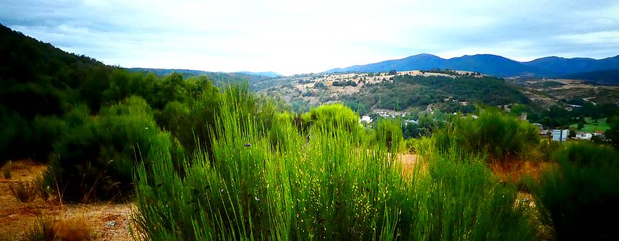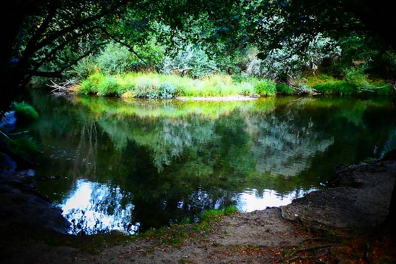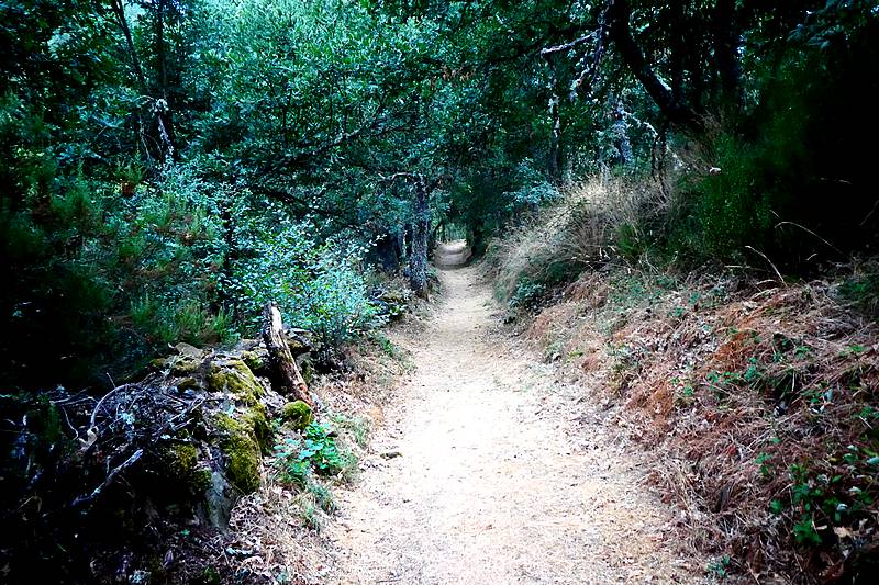 chemin herbeux qui domine la rivière et m'emmène au 10ème village, Torrecillo. Il y a un banc et une fontaine, endroit idéal pour une