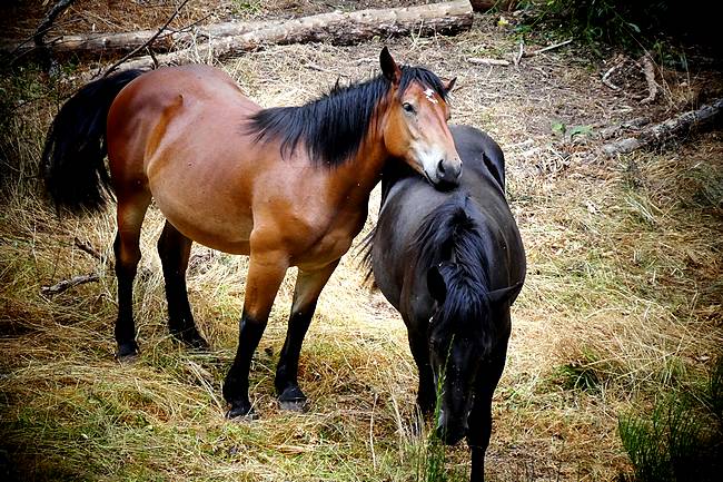 rivière en contrebas, qui débouche sur un espace ouvert avec de beaux massifs de genêts. Il fait frais il ne faut pas oublier que l'on chemine