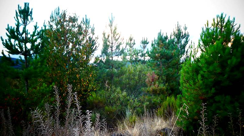 des pins, de la bruyère, des genêts, des fougères et des arbousiers.