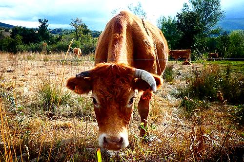 reprends le chemin en suivant une piste agricole au milieu des pâturages.