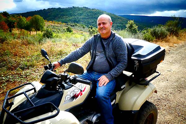 "Quad" qui revient de sa propriété (Finca). On discute un petit