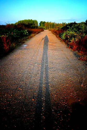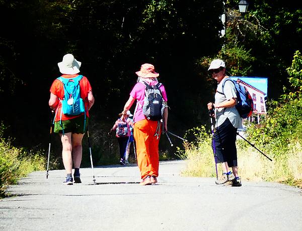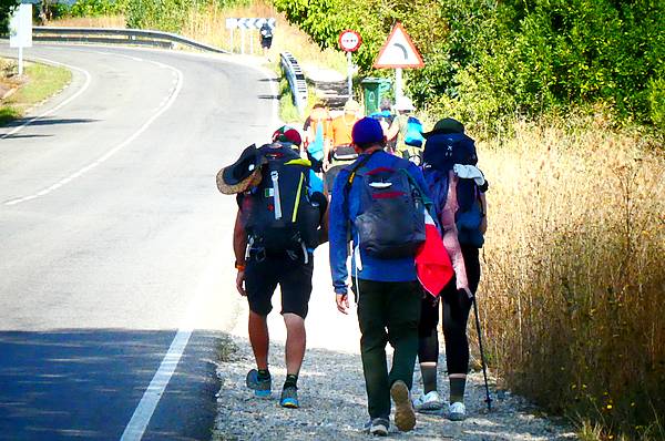 Sur la route montante je vois devant moi se dérouler le chapelet des pèlerins qui s'égrène paisiblement en cette fin