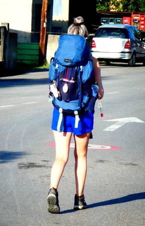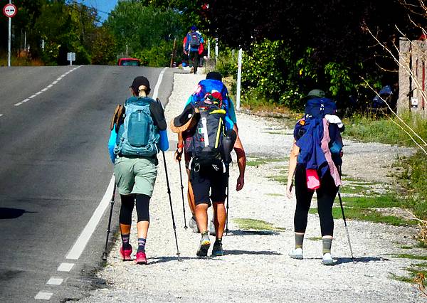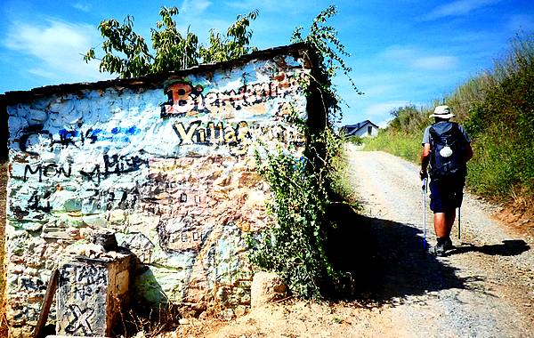 Enfin, j'arrive à l'entrée de Cacabelos, et dès la jonction avec le Camino Francés, je rencontre les premiers pèlerins qui marchent sur ce Chemin...