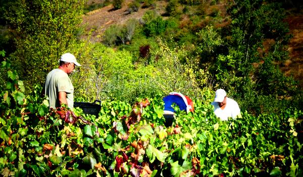 Les vendanges ont commencé et j'aperçois ici et là dans les vignobles les vendangeurs cueillant le raisin.