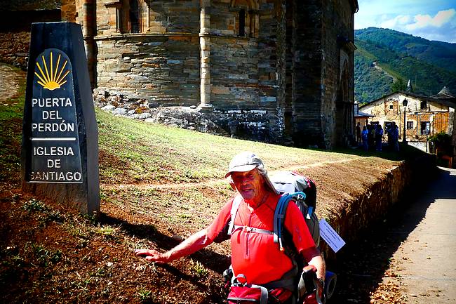À l'entrée de Villafranca, nous faisons des photos devant la "Puerta del Perdón de la Iglesia de Santiago"