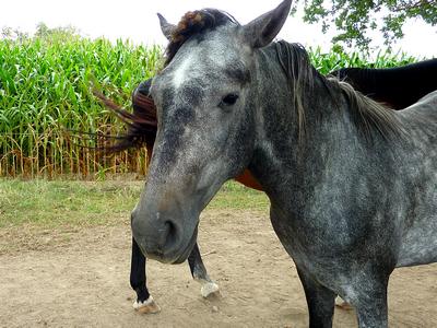 Environnement de fermes, de champs de maïs, de vaches et chevaux...