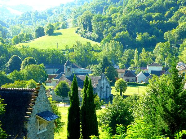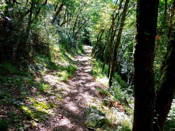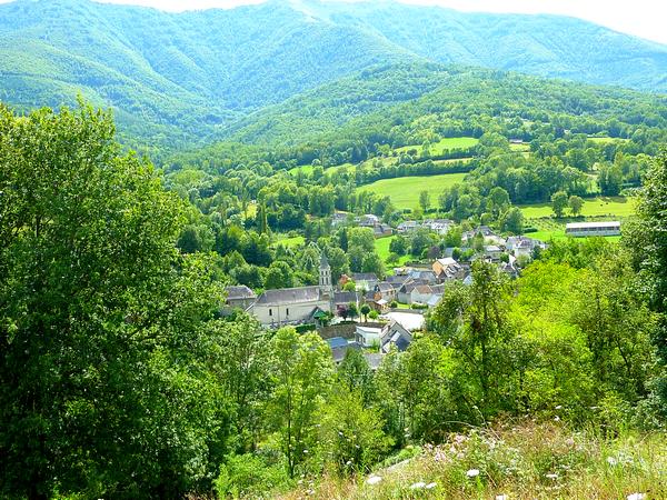 Au début de l'étape le chemin est à flanc de coteau, il domine la vallée et la ville de Saint-Girons