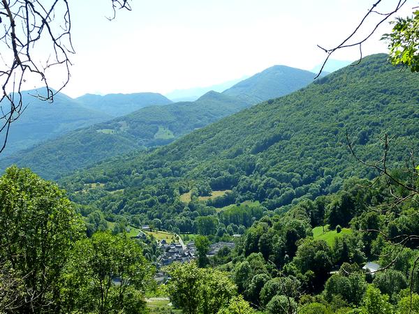 Dans la vallée le village de Portet d'Aspet...