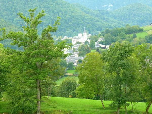 Arrivée en vue du village d'Esparros connu pour son gouffre, l'un des plus beaux des Pyrénées.