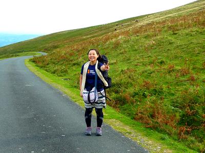 Pèlerine marchant au rythme de son chapelet... Une petite japonaise heureuse d'être sur le Chemin !