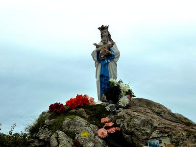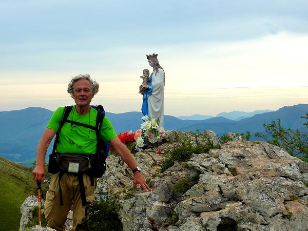 Une pause obligée au pied de la Vierge d'Orisson (Vierge de Biakorri)