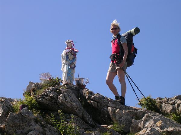 Au même endroit en 2005, avec Erika une pèlerine autrichienne.