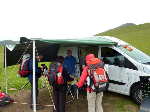 Un ancien pèlerin venu avec sa camionnette pour ravitailler les pèlerins (Donativo).