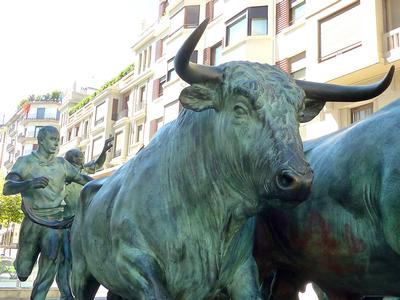 (Lâcher de taureaux dans les rues lors des fêtes de San Fermin, du 7 au 14 juillet.
