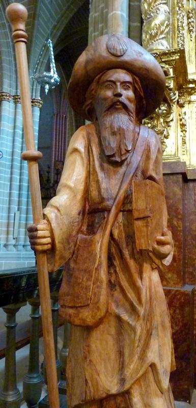 Dans la Cathédrale, cette belle statue de Saint-Jacques en bois.