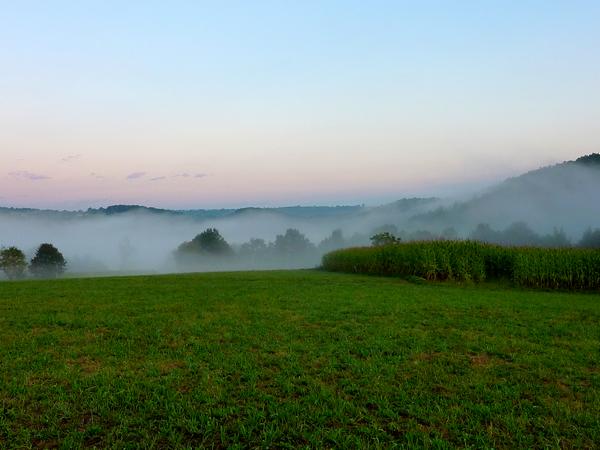 Il a plu pendant la nuit et la nature apparaît comme mystérieuse à travers le brouillard.