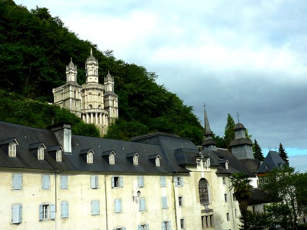 L'arrivée devant les bâtiments du Sanctuaire de Notre-Dame de Bétharram.