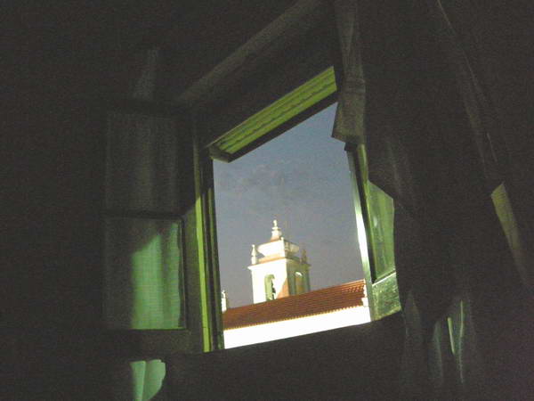 Le soir, à travers la fenêtre de ma chambre, la vue sur le clocher de l'église