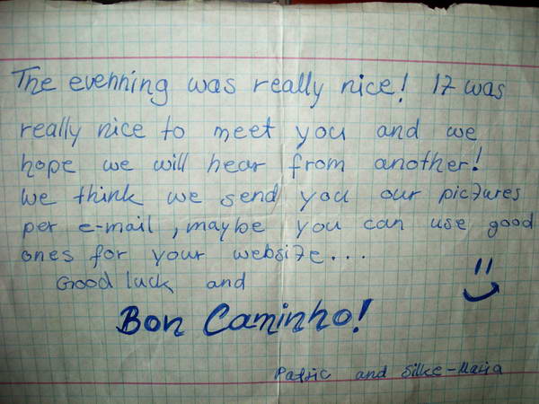 Je suis heureux de rencontrer ce jeune couple de pèlerins allemands avec lesquels je vais faire un bout de Chemin...