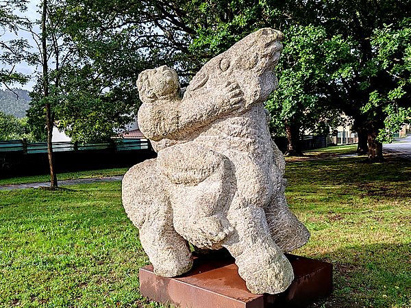 des zones agricoles, beaucoup d'horreos et de calvaires, une belle statue de