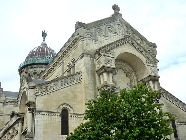 "C'est la halte majeure de Tours qui a donné son nom à la Via Turonensis. Evêché dès le IVe siècle, la ville est réputée pour le culte qu'on y rendait à son deuxième évêque, Martin (371-397). C'est entre 458 et 488 qu'une basilique remplacera la modeste chapelle érigée depuis 437 sur le tombeau du saint. Une abbaye bénédictine se constitue au VIIe siècle autour de la basilique, avant de se transformer en colllégiale au IXe siècle. Au Xe siècle, avec ses deux cents chanoines, elle abrite la communauté la plus importante du royaume. Aux abords de l'an mil, devant l'affluence des pèlerins, une basilique plus vaste est érigée. Au XIe siècle, la basilique est dotée, à l'instar des grandes églises de pèlerinage, d'un déambulatoire permettant d'optimiser la circulation autour du choeur et l'accès aux reliques. En 1562, les guerres de Religion portent un coup fatal au culte martinien : La basilique est saccagée, les reliques brûlées... Devenue paroissiale à la Révolution, la basilique Saint-Martin sert d'écurie, avant d'être rasée au XIXe siècle, puis reconstruite dans le style romano-bysantin à partir de 1886. De la collégiale romane subsistent aujourd'hui la tour de l'Horloge et la tour de Charlemagne..."