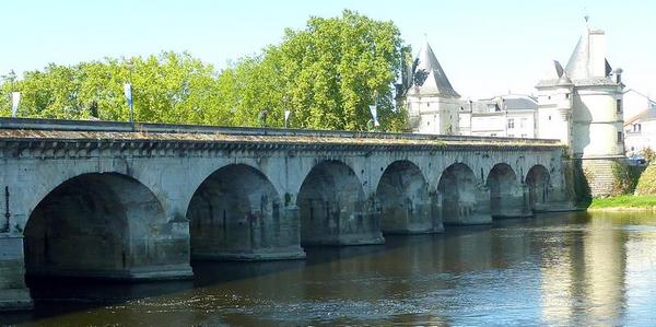 Châtellerault : Châtellerault est traversée par la Vienne, qu'enjambent plusieurs ponts, notamment le pont Henri IV, aussi appelé pont Sully, construit entre 1565 et 1609. La rivière fut la toute première source de prospérité de la ville. Elle engendra en effet une batellerie qui permit de développer le commerce et l'économie, faisant de Châtellerault l'entrepôt du Berry, d'une partie de la Touraine et du Limousin. C'est toutefois essentiellement sur sa coutellerie et ses armes blanches que Châtellerault bâtit sa renommée. Née au XIIIe ou XIVe siècle, la petite industrie individuelle se développa au XVe et XVIe siècles. Elle connut un déclin momentané au moment de la révocation de l'Edit de Nantes (18 Octobre 1685), causé par l'émigration de nombreux ouvriers, mais redevint florissante au XVIIIe siècle. En 1820, l'Etat implanta dans la petite ville une manufacture d'armes. Dès la seconde moitié du XIXe siècle, cette manufacture devint le pivot de l'économie châtelleraudaise. Ce n'est qu'après 1945 qu'elle déclina au point de disparaître. A noter, l'ancienne église Saint-Jacques, consacrée en 1066, abrite une très belle statue du saint en bois polychrome, datée du XVIIe siècle.