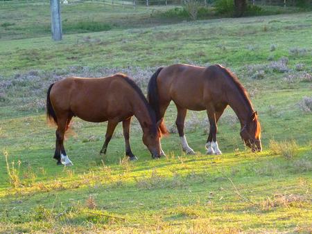 Mes amis les chevaux dans le pré derrière mon hébergement