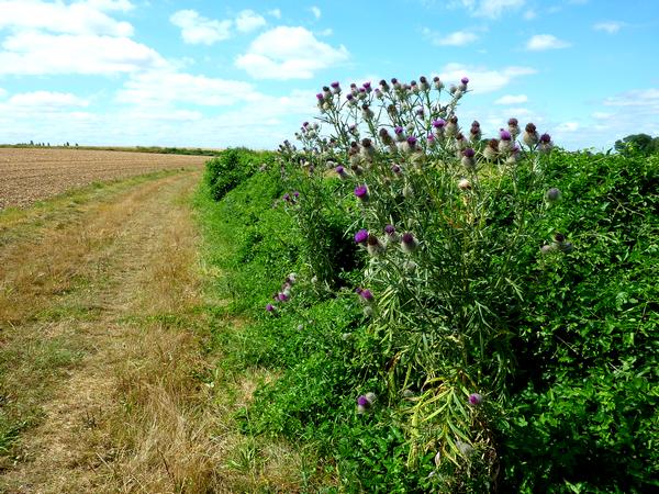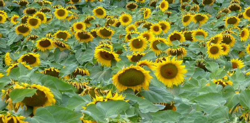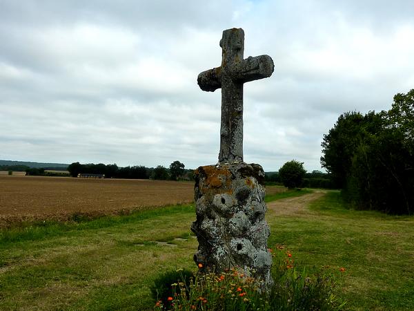 Je quitte le refuge à 6h avec Gilbert qui m'accompagne jusqu'au pont sur la Loire. Nous nous faisons nos adieux, je poursuis mon Chemin, tandis que Gilbert prend le chemin du retour, 3 étapes pour rejoindre Vézelay et sa voiture. C'est dimanche matin, il y a peu de circulation et je vais suivre la N151 jusqu'à St Martin des Champs et Sancergues. Le temps est nuageux et frais. Je m'arrête à Sancergues dans un bar pour un complément de petit-déjeuner. Ensuite je vais suivre la D72 jusqu'à Couy, en passant par Charentonnay, ce qui me fait gagner 2 ou 3 km. L'étape d'hier était fatiguante et celle d'aujourd'hui assez longue, aussi il me faut ménager la monture... J'arrive à Couy à 11h. Il reste 10 km. Je m'arrête dans un bar pour déjeuner. L'ambiance est sympa. Je parle avec le patron qui me raconte un peu son pays et le Berry ! Le reste de l'itinéraire se fait en suivant des chemins qui passent au milieu des champs de tournesol et d'autres champs fraîchement labourés. J'arrive à l'église de Baugy à 14h. Je sonne chez Mr et Mme Guillaume, la maison à côté du refuge. Ils me conduisent à ce refuge municipal, petit mais bien équipé où j'ai du temps pour faire une bonne lessive et me reposer. A 19h, Mr Guillaume vient tamponner ma crédenciale et sa femme m'apporte un panier bien garni pour le dîner.
