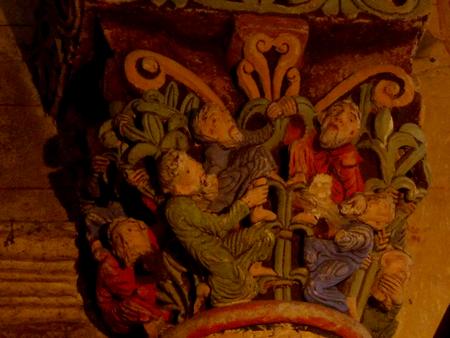 Détail d'un des chapiteaux polychromés exécutés au 11ème siècle