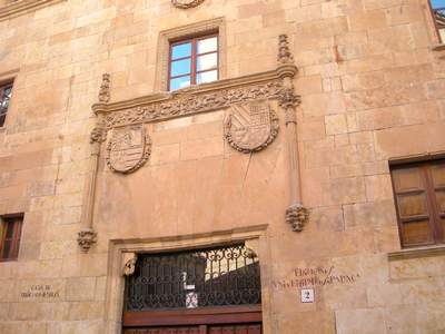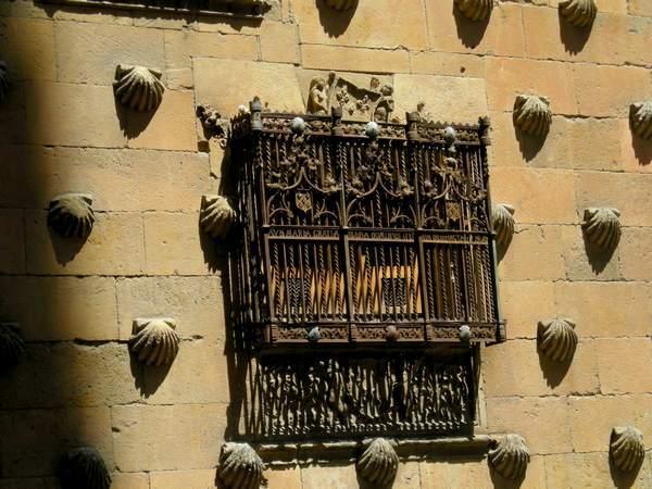 Une fenêtre avec grille en fer forgé sur le mur de "La Casa de las Conchas"
