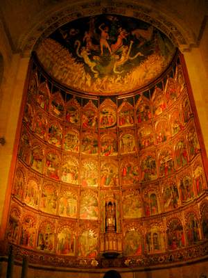 Convento-Museo de las Ursulas Dans la Catedral Vieja, le rétable de l'abside qui se compose de 53 tableaux...