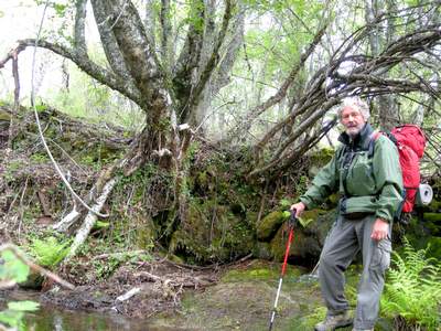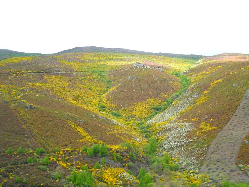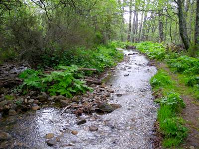 Le couple d'italiens parti avant moi ce matin, que j'ai du dépasser, me rejoint et nous nous arrêtons sous un pont de la nationale pour déjeuner, alors que la pluie se met à tomber. Nous arrivons ensemble à Padornelo après être passé au point le plus élevé de la Via de la Plata (Altitude 1300 m). La descente vers Aciberos est superbe. J'ai laissé les italiens partir devant. Un peu avant Lubian, je m'arrête au bord d'une rivière que je longe depuis un petit moment. Je prends un bon bain dans une eau plutôt fraiche, mais quel délice !!