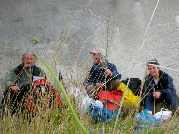 La pause-déjeuner sous le pont de la Nationale, à l'abri de la pluie avec mes 2 compagnons italiens