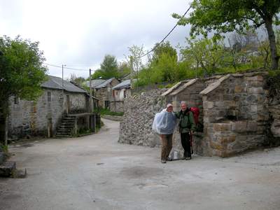 Dans le village de Aciberos devant la fontaine... et mes amis italiens repartent vaillamment sous une petite pluie fine....