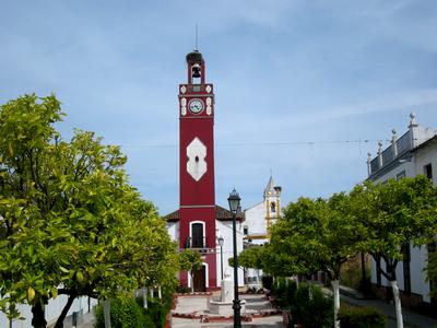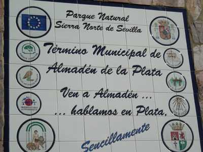 L'arrivée sur Almaden de la Plata La tour del Reloj qui coiffe l'ancienne mairie