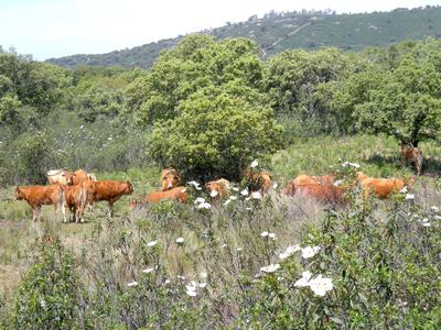 La solitude du pèlerin, c'est de la joie plein le cœur ! Le troupeau de vaches au milieu des chênes-liège et des cistes