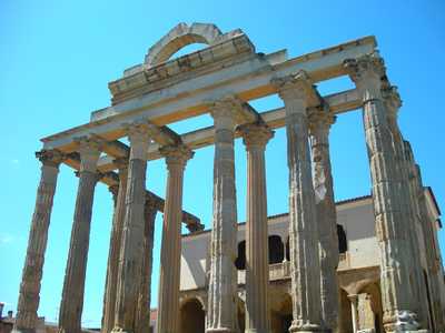 Le clocher de la basilique Santa Eulalia, sanctuaire wisigothique (5ème siècle) Le temple de Diane élevé sous Tibère entre 15 et 37 ap J-C.