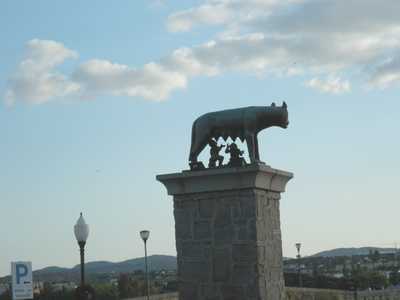 A l'entrée de Mérida, la louve allaitant Romulus et Rémus fondateurs de Rome