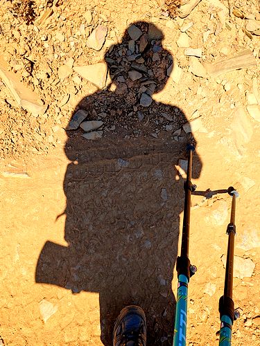 un sentier rocailleux et j'arrive à un point haut où je fais une