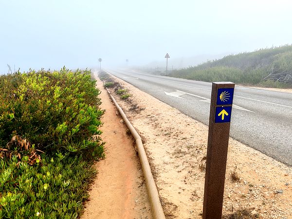 Je suis sur le chemin à 8h. La sortie de Porto Covo est facile et agréable en