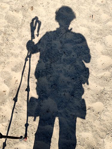 suivant une piste piétonnière parallèle à la route. Il y a beaucoup de