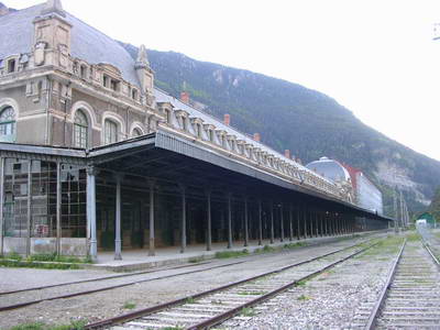 Après 2 petites heures de marche agréable à travers les prés et de beaux petits chemins, j'arrive à Canfranc-Estacion