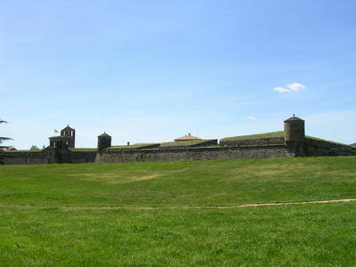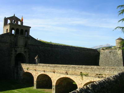 On s'éloigne des Pyrénées... Arrivée à Jaca dominée par un fort imposant